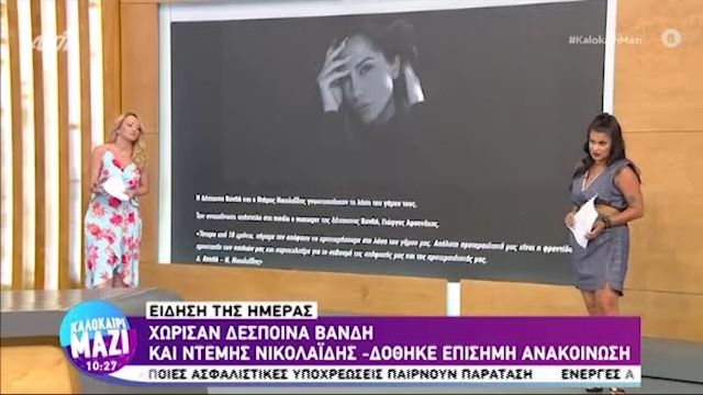 V9ayjkqcnhaytm from www.in.gr Sep 11, 2020 · ποσο μαλλον σ΄εναν γαμο. Δέσποινα βανδή και ντέμης νικολαΐδης τονίζουν πως προτεραιότητα παραμένουν τα παιδιά τους και η προστασία τους και γι' αυτό ζητούν σεβασμό της απόφασής τους. Η δέσποινα βανδή είναι μια από τις πιο διάσημες και πετυχημένες τραγουδίστριες της ελληνικής μουσικής. Πώς χωρίζουν, δραματικά γεγονότα μέσα στη βίλα. Γιατί δέσποινα βανδή και ντέμης νικολαΐδης βρέθηκαν ένα βήμα πριν τον χωρισμό; «αυτή η γυναίκα, αυτό το. Κι αν δεν χωρισεις η δεν απομακρυνθεις εσυ καποια στιγμη, το κανουν τα δημοσιευματα η και η καθημερινες σου υποχρεωσεις, οι οποιες στελνουν τον ενα συντροφο εδω και τον αλλο εκει. 1 day ago · μόνο η νάνσυ ζαμπέτογλου, καλή φίλη της τραγουδίστριας από την αρχή της καριέρας των δύο γυναικών, έκανε μια ανάρτηση στον προσωπικό της λογαριασμό στο instagram.